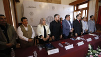 Morelia, Michoacán, a 25 de febrero de 2026.- Memo Valencia rindió protesta para un nuevo periodo al frente de la dirigencia estatal del PRI, junto con él, Rocío Luquín Valdés, como secretaria general del partido.