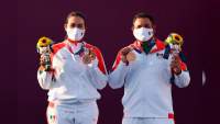 Tokio, Japón., 24 de julio de 2021.- Llegó la primer medalla para México en los Juegos Olímpicos Tokio 2020, esto luego de que el equipo mixto de Tiro con Arco, conformado por Alejandra Valencia y Alejandro Hernández se colgaran el bronce tras u