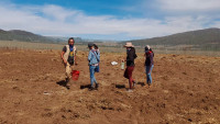 Tingambato, Michoacán, 9 de mayo de 2023.- Estudiantes de la Licenciatura en Desarrollo Sustentable de la Universidad Intercultural Indígena de Michoacán (UIIM), participaron en la siembra de maíz azul y amarillo, haba, frijol, y calabaza, a fin