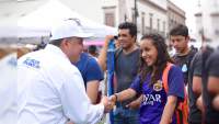 Jesús del Monte, tenencia de Morelia, Mich., 23 de junio de 2018.- El candidato a Senador de la República, del Partido Revolucionario Institucional, Antonio Ixtláhuac, en su visita a los vecinos de esta localidad ubicada al sureste de Morelia, la