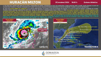 Ciudad de México, a 8 de octubre 2024.- El huracán ‘Milton’ se degradó a categoría 4 durante la madrugada del 8 de octubre, además, se descartó que el centro del ciclón, es decir, la parte más poderosa y destructiva, golpee el estado de Y