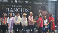 Uruapan, Michoacán, a 13 de abril del 2025.- Los artesanos son el orgullo de Michoacán, pues Michoacán es la comida tradicional, los colores, es lo que nos representa ante el mundo, manifestó el gobernador, Alfredo Ramírez Bedolla, en el marco d