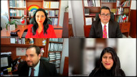 Morelia, Michoacán a 28 de enero de 2025.- Alma Rosa Bahena Villalobos, Magistrada Presidenta; Yurisha Andrade Morales, Magistrada y el Magistrado, Everardo Tovar Valdez en la primer sesión pública del Pleno del Tribunal Electoral del Estado (TEEM