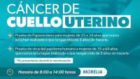 Morelia, Michoacán, a 22 de agosto de 2024.- Para detectar a tiempo el cáncer de cuello uterino, el sector salud realizará sin costo este jueves 22 de agosto, estudios de Papanicolaou a todas las mujeres de la colonia Bosques Camelinas, en Morelia