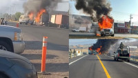 Zamora, Michoacán, 22 de febrero del 2026.- Una fuerte movilización de corporaciones de seguridad y servicios de emergencia se registró la mañana de este domingo 22 de febrero en la zona sur de Jalisco, tras una serie de bloqueos carreteros y la quema de vehículos en distintos puntos.
